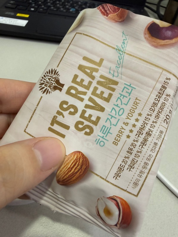 점심먹고 오후가 되니 배가 고팠다. 저녁에 동생과 약속이 있어 그 시간까지 버티기는 힘들 것 같아 하루견과를 먹었다.